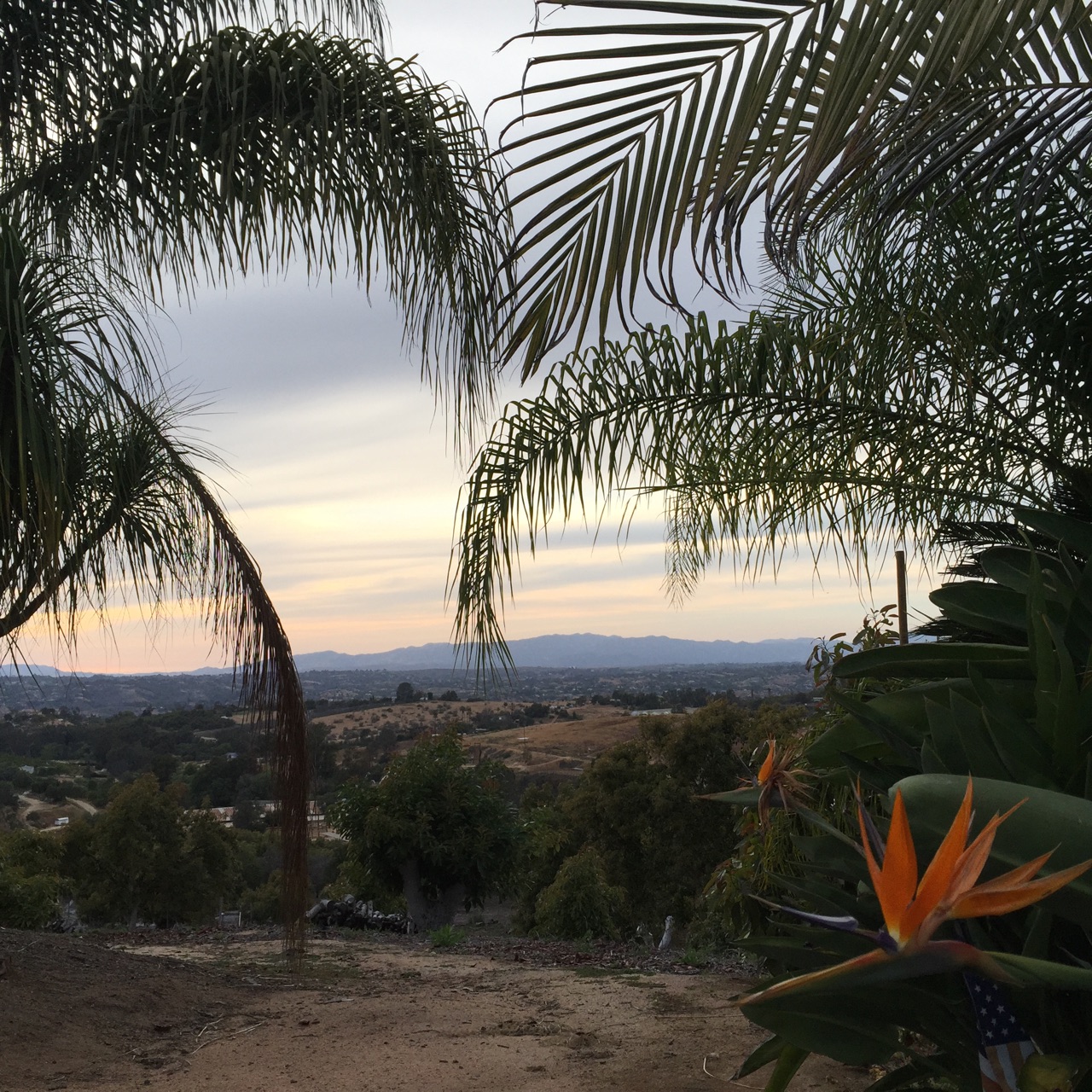 My first California pic taken above avocado groves outside my window.