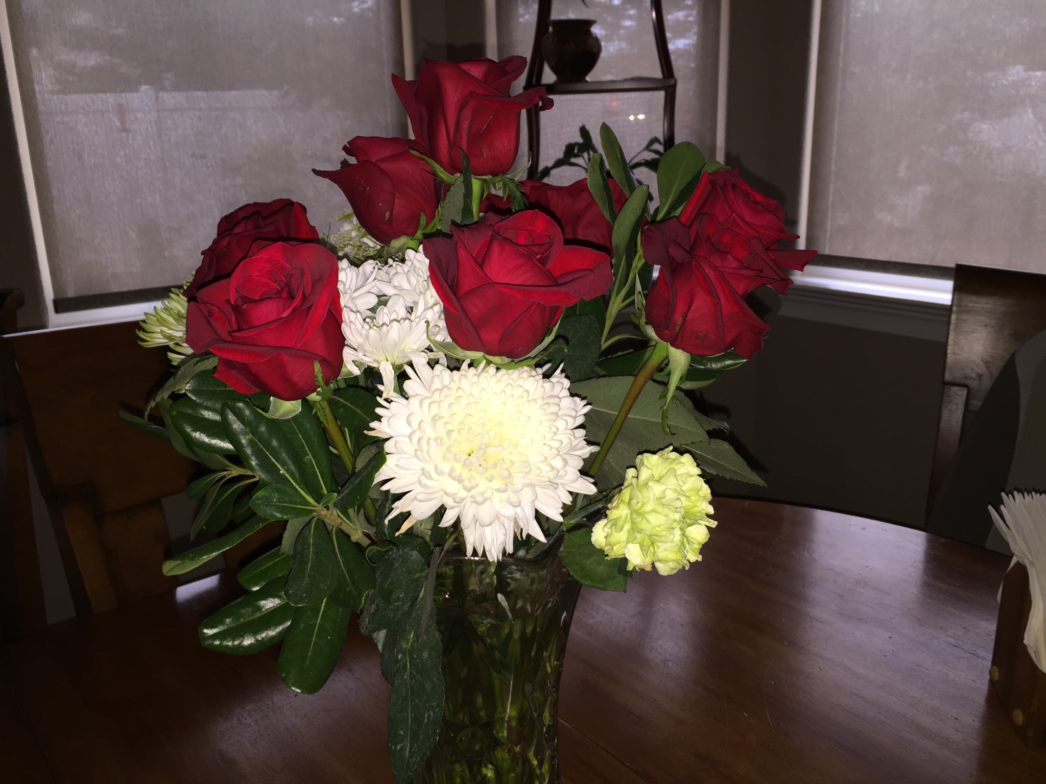 What a joyous greeting when we arrived. Sitting on the table in the dining room is a beautiful bouquet with red roses stuck here and there in the bouquet. Joy said she bought them just for me. I think she know how much I love roses. So exciting to see my cousin Daneece’s home for the first time. It is beautiful, spacious, and purposeful. I have a lovely room all to myself. My bed is an airbed with a foam mattress-like covering over it. Right about now I would like to be in it. Up too late again and in the morning we are going to early service at Bethel Church here in Redding, California. I am excited to register on Monday for the class that I am already registered for. We register after 3:00 p.m. on Monday and the first session is Monday evening at 7:00 a.m.