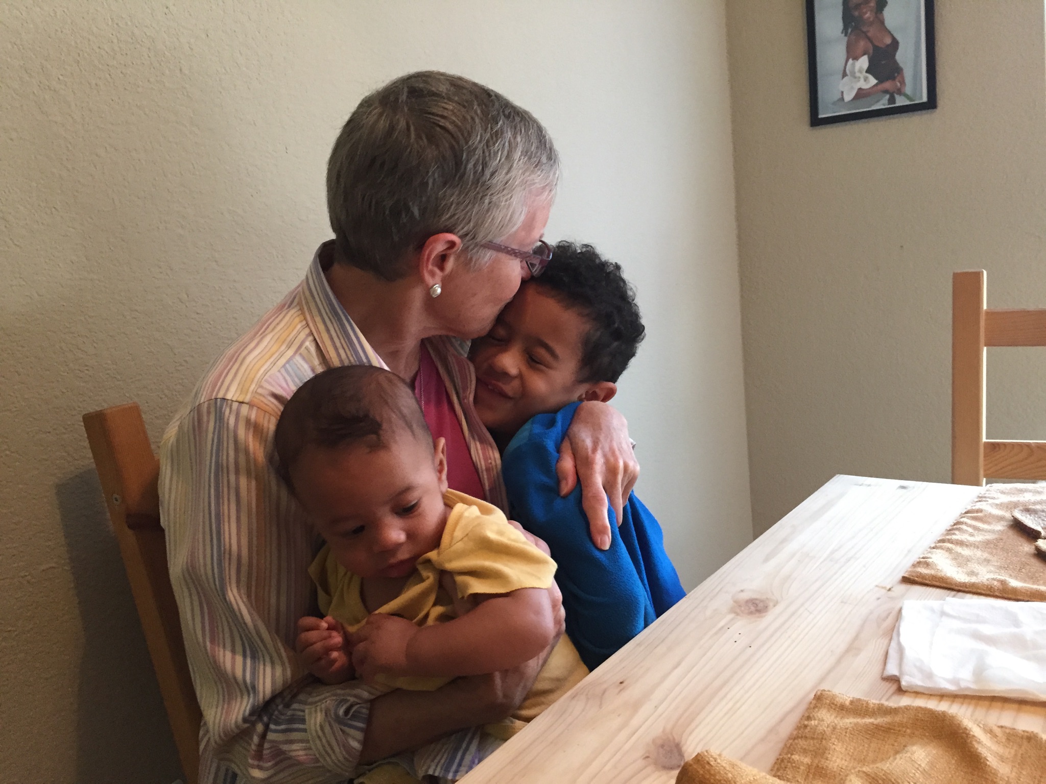 Arrived in the front of Chris and Cynthia’s apartment just as my phone rang and it was Cynthia calling me to see when I would be arriving. She was surprised to know I was actually just outside her door. So was I. I didn’t know which door I was supposed to be in front of. Her baby, 3 ½ month old Noah, who was two weeks old when I was here previously has blossomed like a spring flower. He is beautiful. Sorry I forgot to take a photo of him this evening so you could see how cute he is. His older brother David has even shot up. David calls me grandma and I love it. He was so excited on the phone talking to me yesterday when he knew I was coming. I hope Zach and Xander will be as excited to see me. I know I am excited to see them and see how much they have grown. Oh wow! I bet they have grown noticeably in 4 months time (just like grandma did).