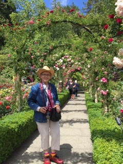 As I sit here in a BC Ferry, being transported from Vancouver Island to mainland BC, the ocean is surrounding me with a myriad of small islands dotting the distance horizons. It too is peaceful and calm as the clouds languidly drift in an unhurried way and the panoramic view of them is breathtaking. But, I must keep my mind on writing this blog and can’t enjoy the view like I’d like. Well, yesterday that was all I did, ENJOY THE VIEW! Every time I turned around there was something different to look at. Colors that I have never seen before, both made by God and made by man. I have never seen such a variety of ethnic backgrounds, or heard so many different languages, nor imagined such magnificent attire on both men and women as I viewed in the park. I’m sure I fit right in. When I get WiFi I’ll be sure and download at least one pic that shows my (rather eccentric) Butchart Garden dress attire. I had on my beige pants with the colorful little polka dots, a muted pink top, a multicolored striped pastel blouse, red shoes, my favorite socks that are horizontally striped lime green, bright orange, true yellow, hot pink, turquoise, and dark green. I love them! Oh, also I had on a jeans shirt/jacket and my hat that I acquired from Bill and Lisa’s neighbor who thought my polyester patchwork quilt dress was the ugliest dress she had ever seen! Well, my hat that she gave me may very well BE the ugliest hat in the world now that it has gone a few thousand miles with me on this trip. BUT I LOVE IT! It is light and comfortable and cool and stays tight on my head in the wind. The hat topped my ensemble. Well, actually I need to say that I had my little purse with the long strap crossing my front and then MY RED CAMERA hanging from my neck to top it off. What a sight I was. But…my feet were comfortable, I was warm enough and my eyes were shaded from the sun without sunglasses and I didn’t have to keep up with a loose purse. Oh the comforts of being older, not really caring about the opinion of others. Sometimes it was comical to see their looks I received. On other faces I just saw sweet smiles smiling back at me. It is so good to live in my world.