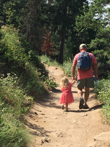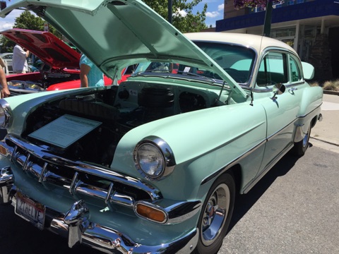 Well, you don’t walk too fast with a two year old in tow. She tired quickly and would only progress reluctantly. Daddy Brian did a lot of carrying. It was a challenging, rocky course, but with many wonderful lookout points of interest. It was worth it to go to the downtown area of CDA early today. Not only did we enjoy our two hour hike in the cool of the morning but we also had opportunity to get great parking spots for the Car d’Alene. And boy did they ever have some beautiful old classics. I especially enjoy the ones I remember from my own childhood. I didn’t take many photos but I did include a 1954 Chevy similar to the one we owned when I was a child. We had that car for many many years.