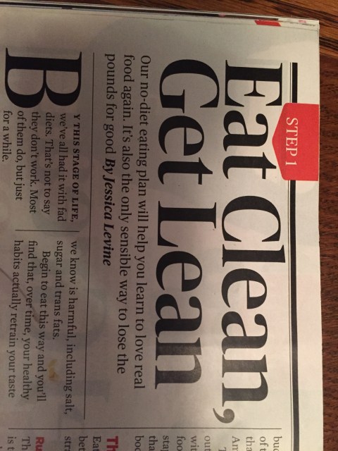 Two simple words. The very same words that was on the top of an article that Dave and I were reading out loud at lunch before we went to see her. And what is interesting to me is that just yesterday Dave and I were talking about food and I told him the best way to eat was to eat clean. He asked me what that meant. I explained that it was eating foods in their natural state, the foods I like to eat. And then the next day (today) we have two confirmations of exactly what it does mean by both a PA and an article written by a nutritionist. I think that was good confirmation.