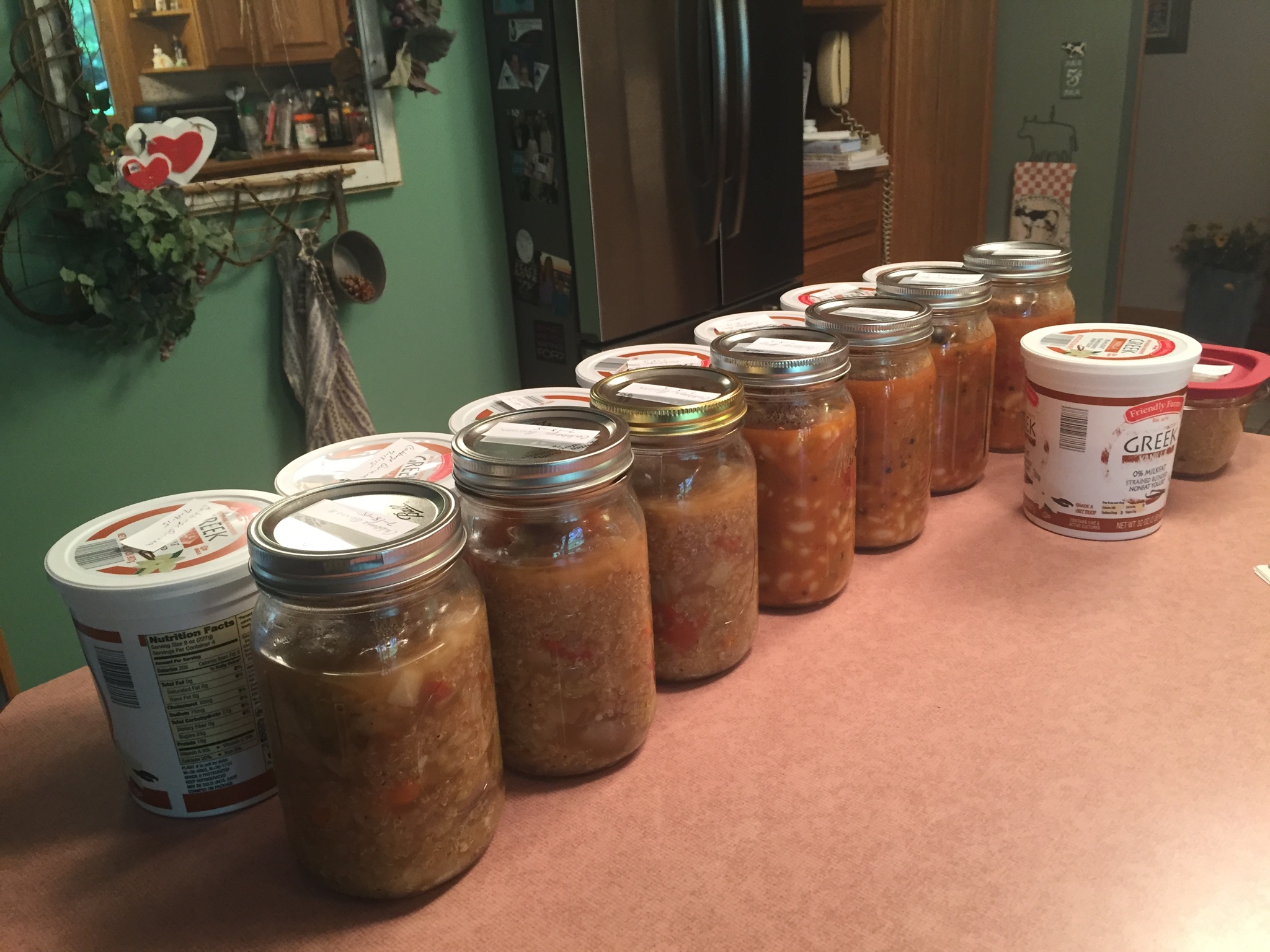 I say with trepidation (especially if my cousin Paulette is reading this blog) that today was another “food obsession” day. I wouldn’t really call it “obsession”, but rather a WORK DAY. I made over 16 quarts of two different kinds of soup. Worked out early at the gym, came home and worked the rest of the day on the soups. The only really good thing about it, is that I was able to get a lot of food out of my fridge and it went directly to the freezer when done. A couple of jars made it back to the fridge for us to eat on tomorrow and the next day. I worked hard, on my feet all day and now I have a good tired overtaking my body. It feels good to be tired after a good days work.