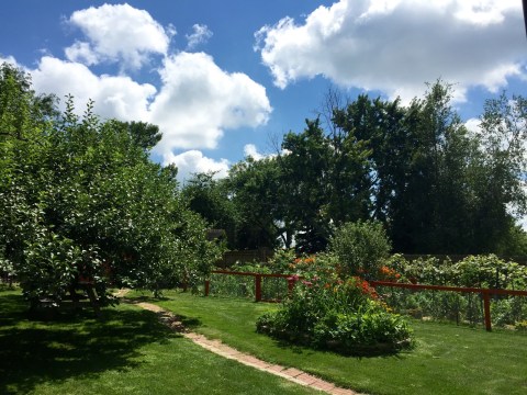We had a great time at our friend’s house. Christy is a gardener, both flowers and vegetables. They have a large lot on the outskirts of town and I think every square inch of their property is in production of something. They have 20 different kinds of apple trees, peach, nectarine and some others I can’t remember. Berries galore grow around their yard with names so different I can’t remember them. She has currents and sent me home with some of her black current jam. She also sent me home with a couple bags of MORE FOOD! Picked right from the garden, of which she raises everything possible. I’ve included a few pictures of their yard. I forgot to ask permission to use their picture so I won’t include any with people included. We had a delightful afternoon. My goal yesterday was to work and get all my work done so I would have no work to do today. Maybe that was a good thing because it allows me to have the block of time to work up the baby photo session.