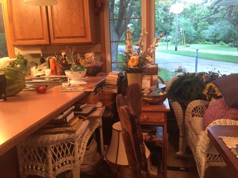 My list was mostly about the order in which I wanted to go through rooms and closets and cabinets, etc. His was about cleaning up the yard and trimming the trees in the woods, and cleaning gutters and power washing the brick on the house and the terrace. It was an eye opener to us both. Oh man, I don’t ever want anything to happen to him. There were a lot of other priorities on the list but mostly it was as I stated above, me – house, Dave – yard.
