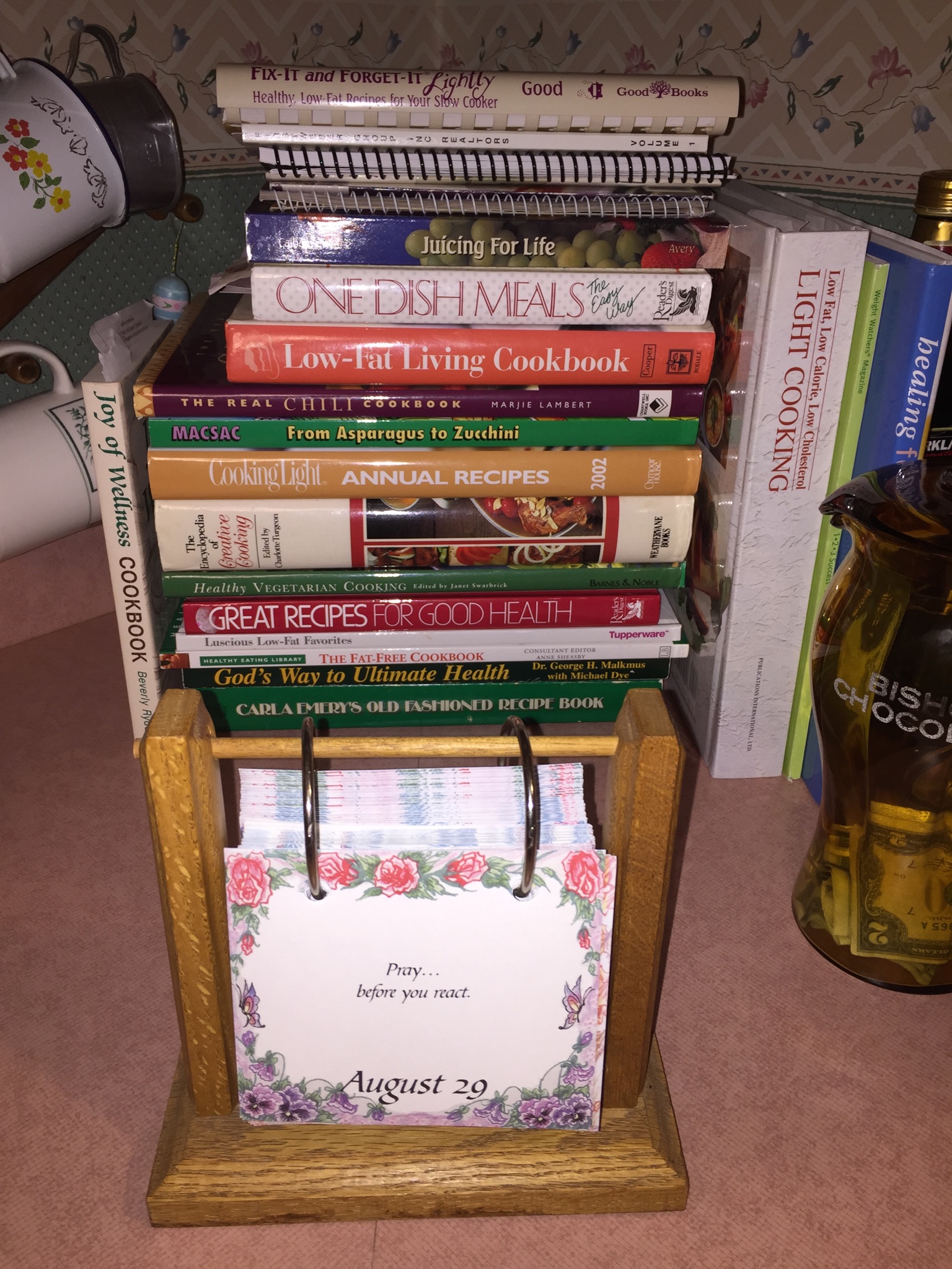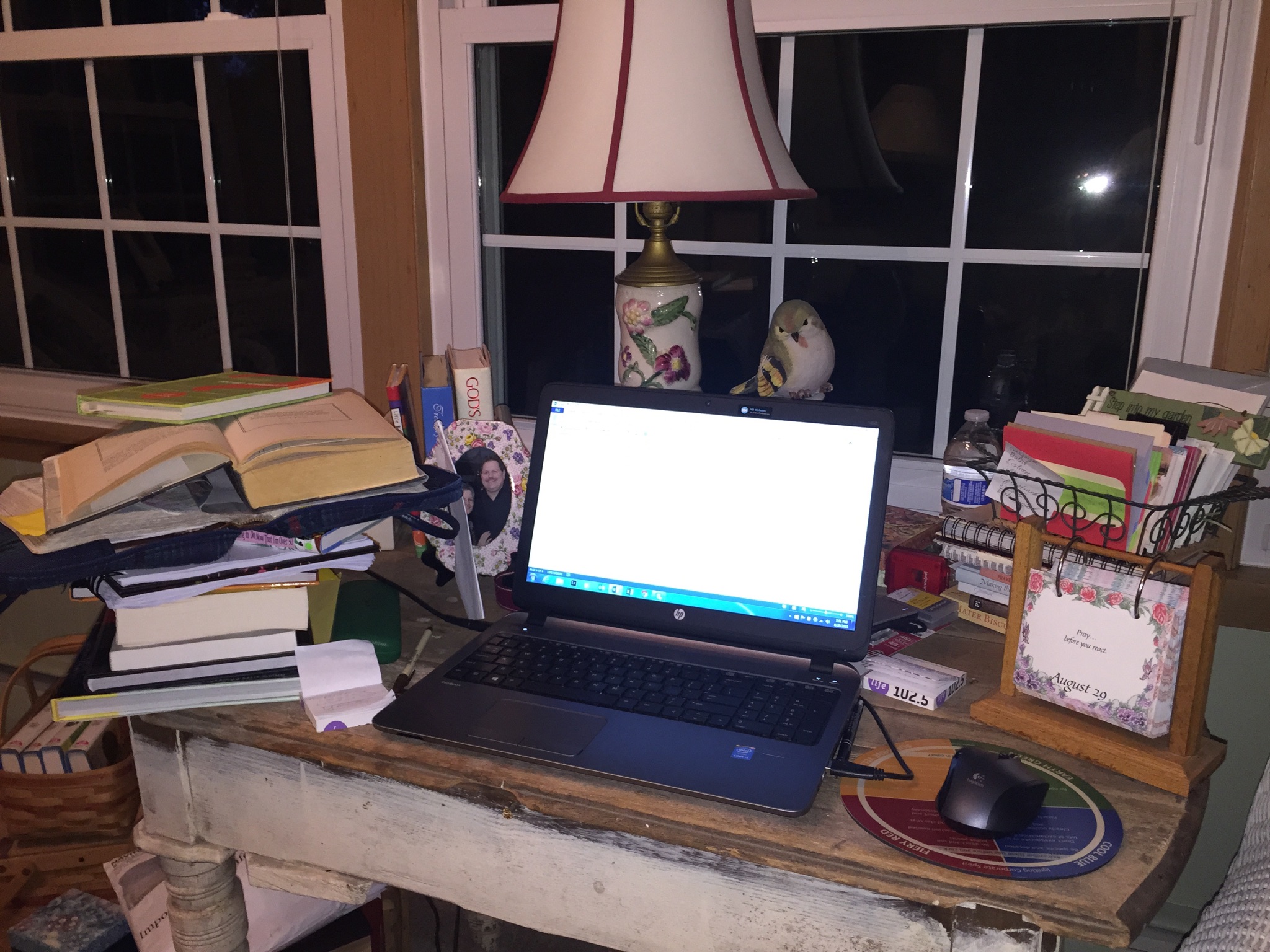 Okay, here is my first confession. If you scroll down to below the blog you will see my “neat” little desk where I type my blog (so I won’t need to go into my messy office). The only thing is, I have been here a few weeks now, and as you can see, to even copy the quote from the book I had to stack it up on top of a foot high stack of other books that thrill me to have by my side. So, perhaps the first thing I should do is start some action (clean up the pile) and then perhaps I will receive the inspiration to do even more. Hey, you know what, that was exactly what happened this morning. I had one plan, but saw a need, and when I started in on the task to clean up an area I was then inspired to keep on going. I think I accomplished quite a bit for a Saturday when I originally planned to do as little as possible.