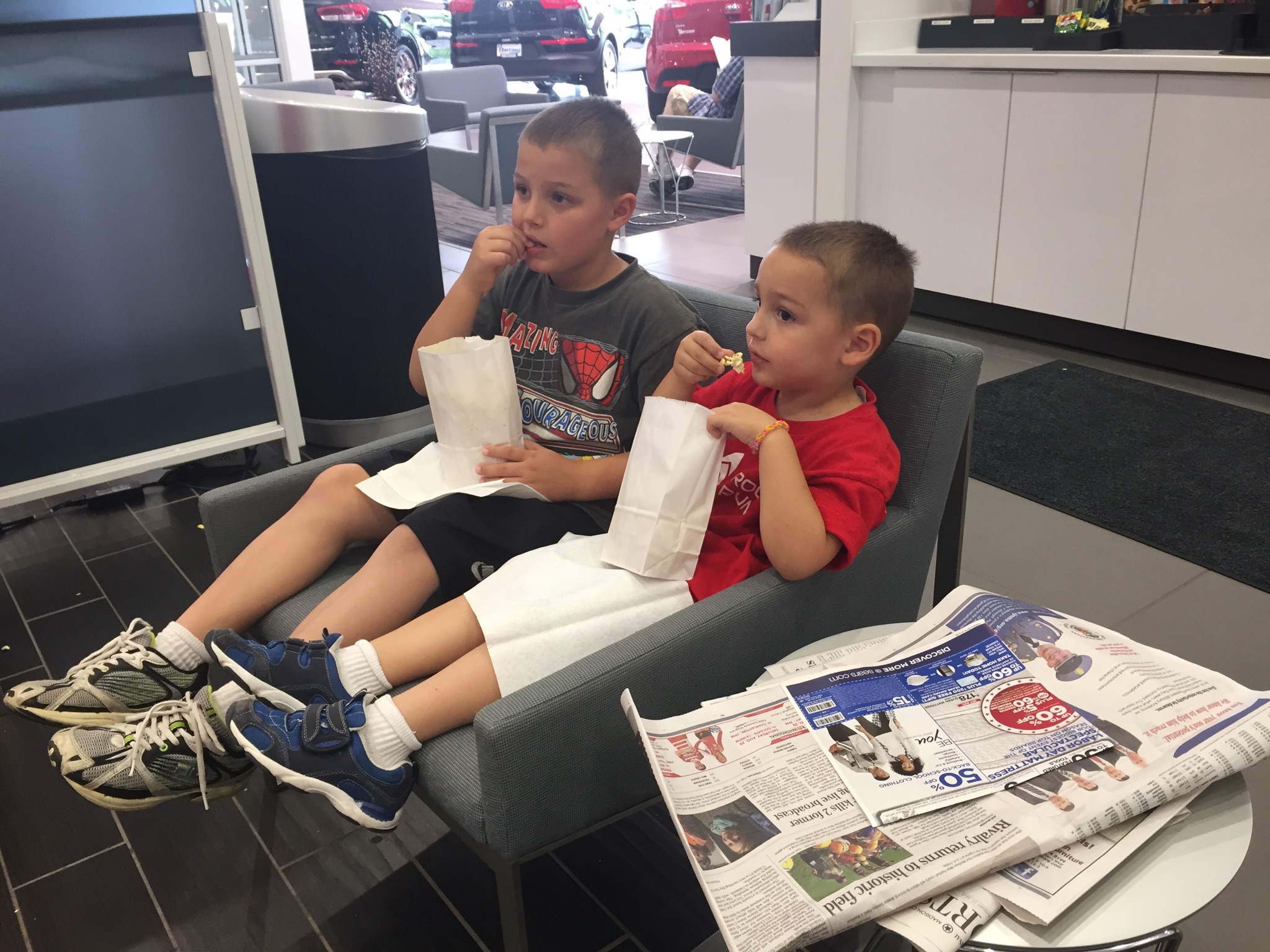 An unscheduled, unplanned day ahead, and who knows what can happen. I hadn’t finalized any plans for today so I just went with the flow. I had my grandsons with me and when I have my grandsons with me you can never know ahead of time which way the wind blows. I knew I wanted to do some sort of adventure with them but didn’t really have confirmed plans as what to do. There were some errands I needed to do but I knew it would not make them (especially the older one) happy campers to know they had to go “SHOPPING”. I truly believe Zachariah detests shopping. First of all he knows I cannot be coerced, begged, or pleaded into purchasing anything other than what I have on my list to buy. I had a mission. And they had to go along. Zach was a bit sullen at first until I told them a little more as to what the day held. First, we would take care of the necessities, which were errands for grandma. The first errand being a trip to Target, short, but very boring to the boys. We then stopped at a Goodwill Store to check out the toys. This was a much more exciting endeavor. Zach found a “chapter” book he liked. Xander found nothing on which to spend his two dollars. The next trip was to the car dealership where I receive FREE car washes as long as I own my car.