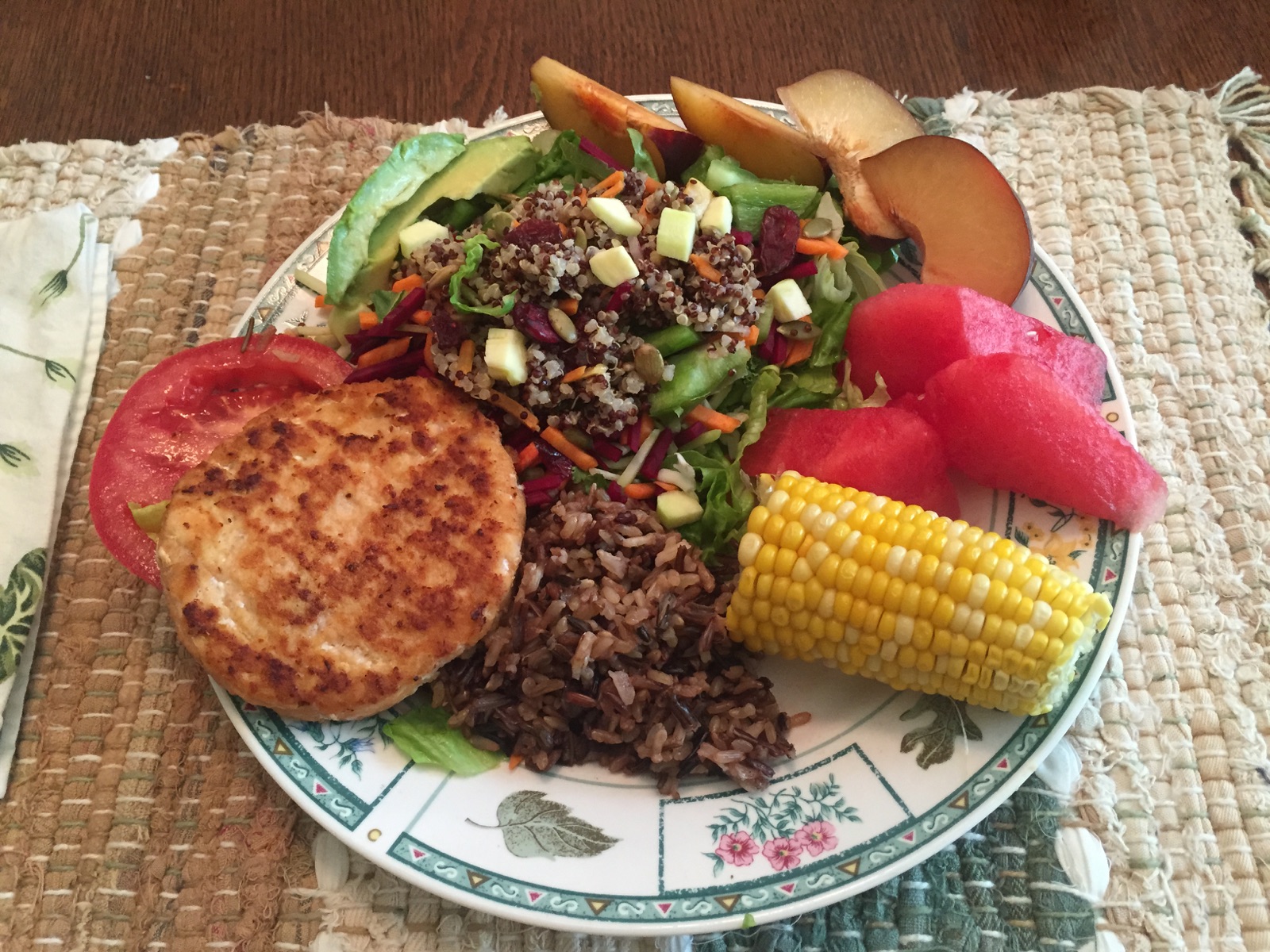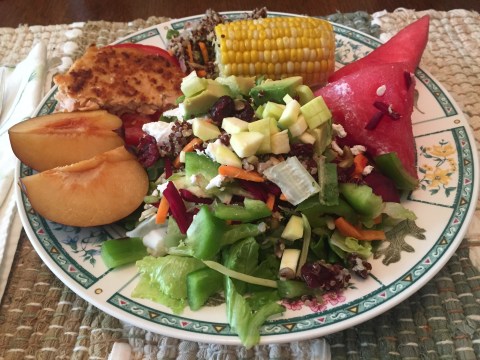 I will publish a photo I took the other day of the lunch I prepared. This is our largest meal of the day and it is filled with all good things. I could not eat it all. What I usually do is save what I am unable to eat and snack on it later.