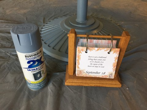 Now back to a capsule of today. This afternoon I was able to spray several light coats of paint on my table and its base . I have one more coat to apply but will not be able to do so until 6:00 p.m. tomorrow evening due to the instructions on the paint can. Hopefully, that will be my final coat, otherwise I will need to buy one more can of paint. I look forward to seeing it in the light tomorrow. I have it in the garage and it was getting dark before I finished today’s final coat.