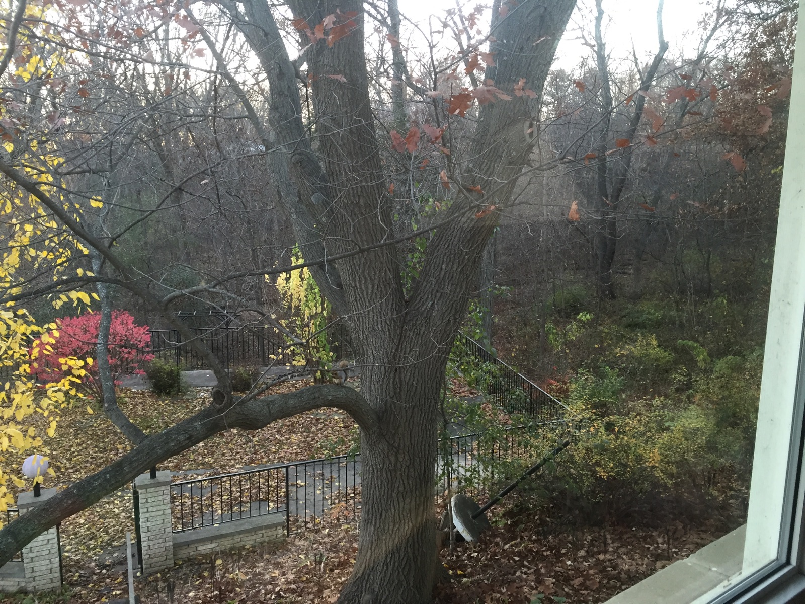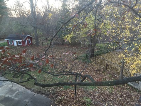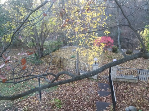 The leaves have finally fallen from the great oak tree outside our living room window. It was dusk when I looked outside and I could actually see the backyard area behind our house because the leaves no longer covered the view. I’ll post that picture so you can see the abundance of leaves strewn over the yard and terrace below. Every season here has such a unique beauty all its own. I never cease to be amazed. I wonder sometimes if others see the beauty as I see it. If so, I never hear people speak of it. It is such a shame when we take the beauty of even one day for granted. To have eyes to see is enough reason to revel in all that can be enjoyed. Look around you and find things to look at that you pass every day and never take time to really focus on. You may surprise yourself with all the beauty that is in your world wherever you live. I just happen to think that I live in one of the most beautiful places on earth. I have never regretted moving to Wisconsin from California 29 years ago. It gets cold, that is true, but even the stark white of winter is pleasing to my eye. Another thing I love about country life are the fragrance of life around me. Unless it is freezing I usually have my car window rolled down and just inhale all that I pass. However, there is one farm down the road that I usually roll my window up before I pass when I have to go by it. It is a very large dairy farm. Need I say more? There is one other oder that catches me unaware when I wish my window was up and that is the smell of a skunk, of which we seem to have a plethora.