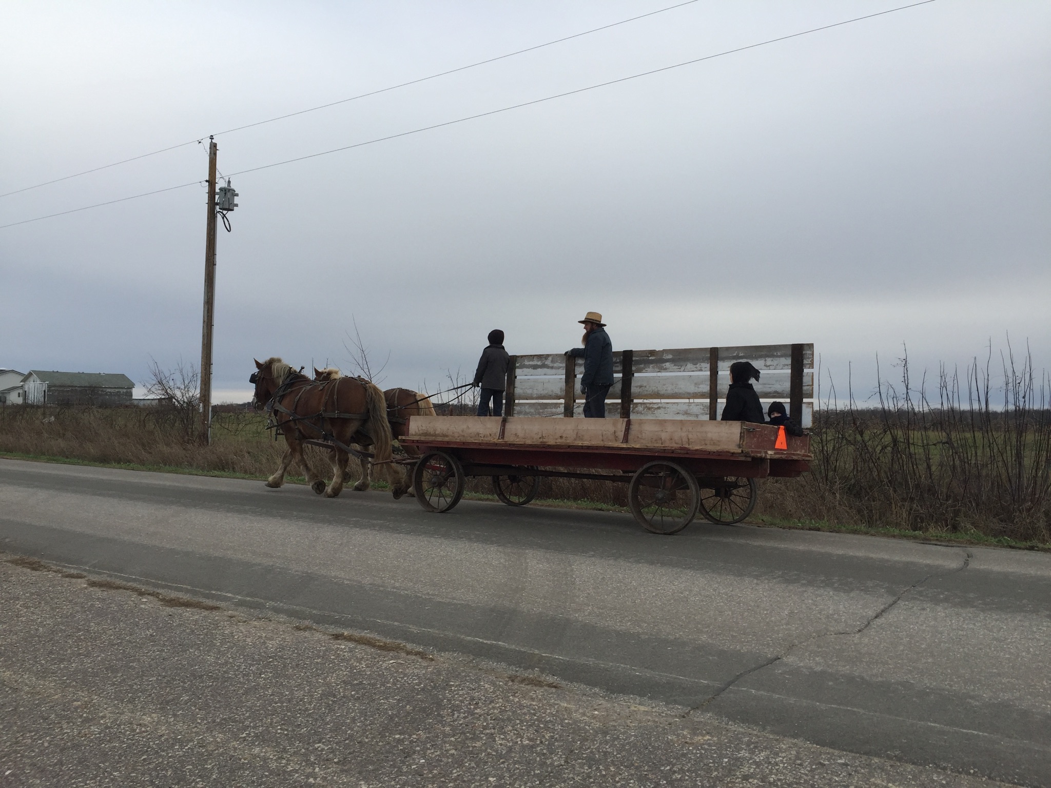 As we traveled the back roads in Delton, Wisconsin where Mishler’s Country Store is located, I stopped and took a few photos. The Amish do not like to have their faces photographed so I respectfully tried not to have their faces show. Dave pulled over alongside the road so I could get out and take a picture of a horse drawn wagon. When I later viewed the photo I noticed one little child looked back and I did capture the little eyes. Realize that it is very cold here today, actually in the freezing range, and it was only the eyes that peeked out from layers of clothing. Open aired wagons are not heated (except in the summer). I took another photo of a passenger buggy coming toward us which had the driver concealed inside. I didn’t realize how quickly he was coming so I took the picture through the windshield and almost missed it entirely. There was one last photo I wanted to snap. I must admit, when I took this last picture I felt a bit like a voyeur. But it was waiting to be taken. And what a story it told. See if you can find the story behind the picture tells.