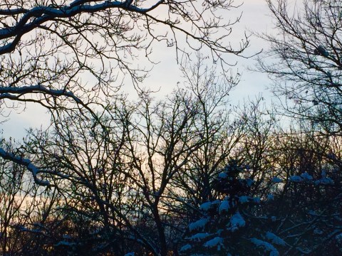 I so love sitting here in the sunroom looking over the snow covered ground with the sun dipping below the tree line. I am on the second story level looking out over the back of the house and the yard slopes down so it gives me an even higher perspective. I never tire of looking out these windows. The scape is never the same from day to day. Actually it is never the same from hour to hour. As I look out in the quickening twilight there is movement and change taking place even as I write. Cotton puffs of snow cascade to the ground as wind ripples through the branches. Squirrels turning in for the evening hasten to their nests. An occasional deer will lope across an open space, only to be totally hidden from view a few seconds later as it camouflages itself in the darkening woods. The sky changes from vibrant deep blue as it softens to pastel shades with hints of pink and violet. It’s as if God is orchestrating my own personal video in true life reality. And I think He is really doing it just for me. I sit here and think that no one else in the whole world is seeing what I see now. It is just for me. And I love it. It is my favorite time to write.