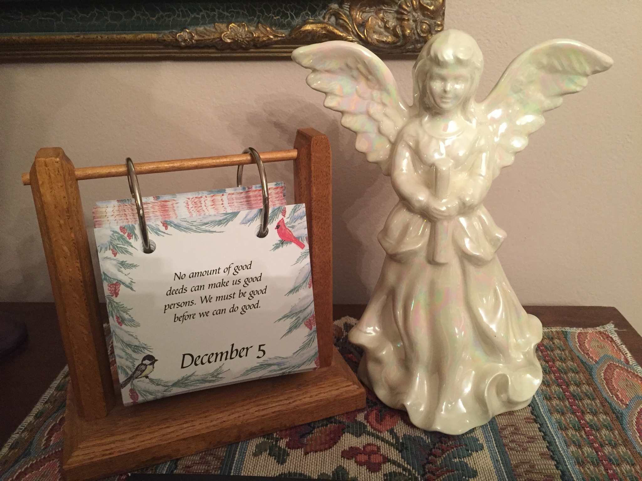 There is another special event we hope to attend tomorrow afternoon at the State Capitol building. It is a group of children from all the area schools who combine to perform the story of Christmas, in still life acting, and singing. Once upon a time there were fliers that were sent home by the schools informing the families of the opportunity to be part of the Christmas program. I don’t know if you have ever heard of the name Anne Gaylor and her daughter Annie Laurie Gaylor who spear-headed the “Freedom from Religion” movement that began right here in Wisconsin in 1976, and which was incorporated nationally in 1978. Now the schools are not allowed to advertise the event and the children must sign up outside of school to take part in the Capitol pageant. The production is held in the Capitol’s Rotunda on thesecond floor, The upper floors of the rotunda are also used for the still life acts of the Christ Child scene in the stables, and for the angels. It is a magnificent depiction of the story of Christ with beautiful singing from the choir and musicians playing background music. There is also a harpist also that adds so much to the event.