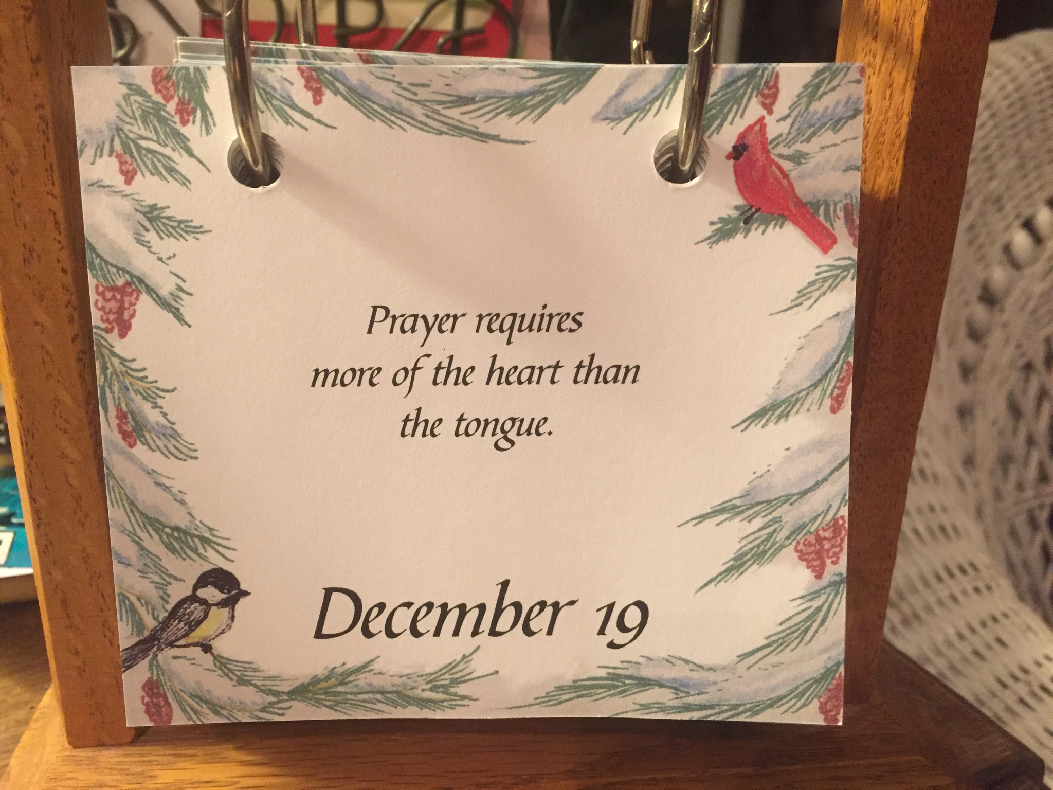 And the meaning of Christmas? To give homage and praise to the Christ child who was born to give His life so that we may live. As the quote from yesterday’s (December 18th) Calendar Wisdom stated: THE SON OF GOD BECAME MAN TO ENABLE MEN TO BECOME THE SONS OF GOD.