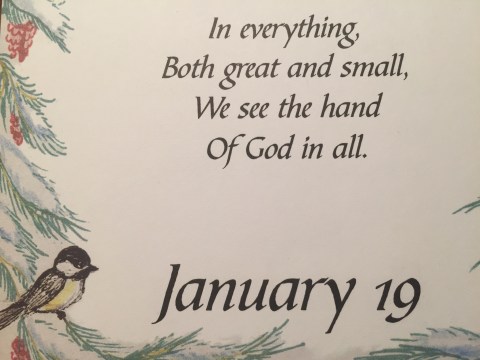 I believe this poem just came as a confirmation to me that I be reminded that God is in control and He knows the beginning from the end. We are to lay our concerns at His feet and then wait for Him to give us direction. This all has to do with the situation regarding the damage to our home, and how we are going to handle the entire situation, as to what must be done to rebuild. A lot more involved than that, but that is the gist of it.