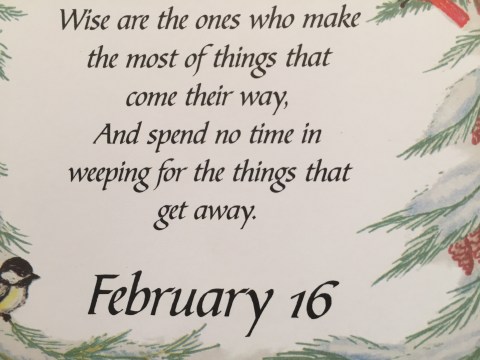 Today is someone else’s birthday. It is no longer mine. It is a good thing because I don’t think I could handle two birthday days in a row. Instead, I must use some of today to cook, clean, and prepare for tomorrow’s birthday party (so you see my birthday is not quite over yet), and the remainder of the day to recuperate from yesterday’s saga. The entire day yesterday was delightful, even going back to pick up my credit card. Dave did not complain one iota. Tomorrow should be fun too because we’ll get to be with our family. I’ll have the house all decorated with balloons and Valentine décor (which was last Sunday’s theme) so it should be festive and colorful. Martha Steward I AM NOT, but it is fun trying.