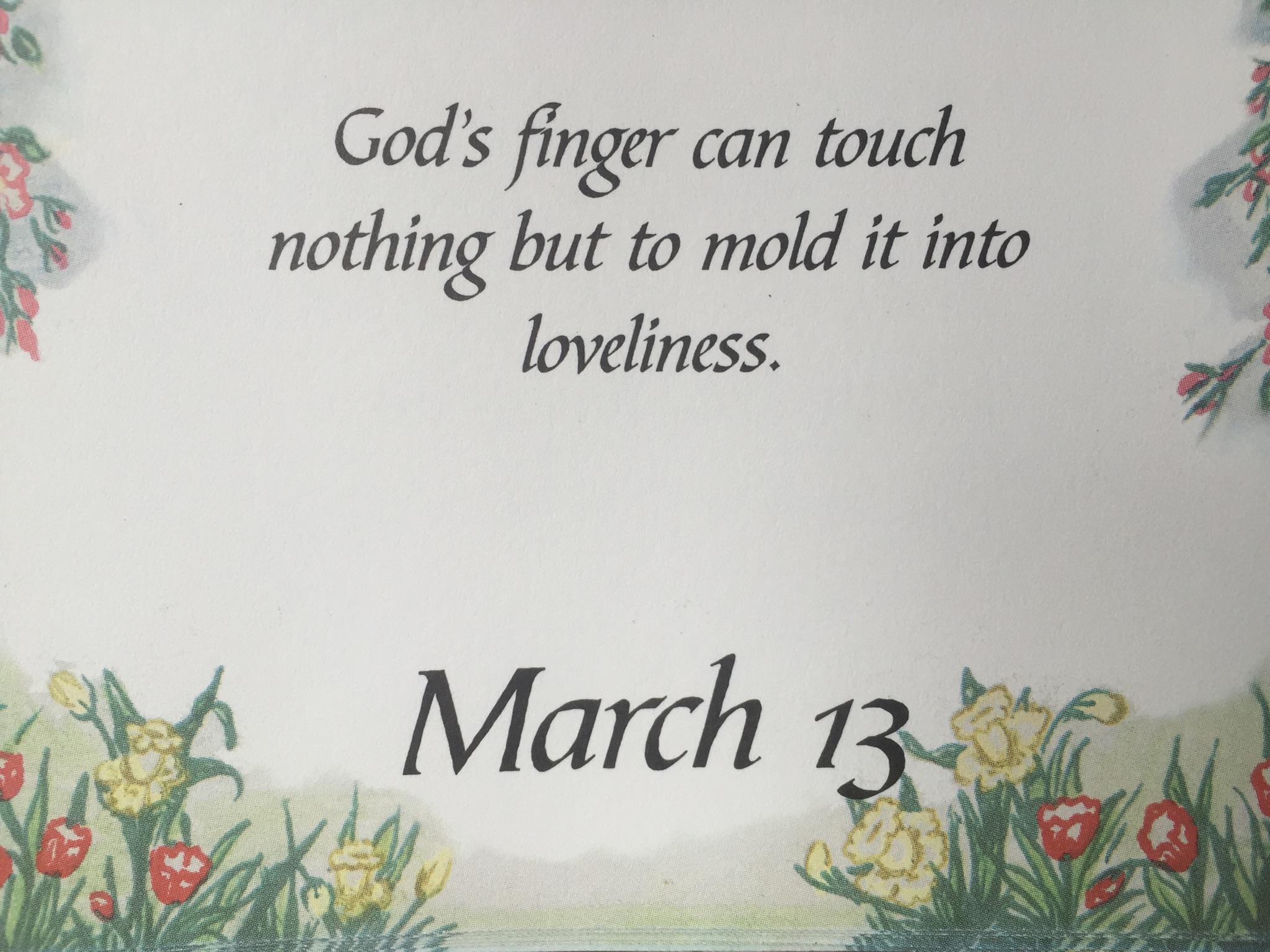 I didn’t realize it was so hot yesterday. I think it actually hit 50 degrees or higher. Well, I dressed WRONG for that temperature. I wore pants, a long sleeved cotton blouse and a long wool sweater over it. I also had a warm shawl over that. By the time I got to church I was sweating. I had the windows down in the car and I was still overly warm. First thing when I arrived in the foyer of church was to get rid of my shawl. I was still hot however. I couldn’t take my sweater off because it was the “outfit” of what I was wearing. I sat in church feeling like I was going through the change of life again. Believe me, it didn’t take long for me to shed that wool sweater when I arrived home. The temperature is so variable at this time of year and I haven’t yet acclimated to the change in weather. From here forward I will check the current forecast before getting dressed.