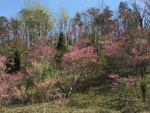 As we traveled north it’s as if we were going backward with spring. Everything was so lush in Florida and South Carolina and even in parts of North Carolina. Today as and as we traveled north the mountains became scare of greenery. However, there were trees with purple blooms lining the sides of the mountains enticing spring to come forth. Everything state has been so gorgeous.