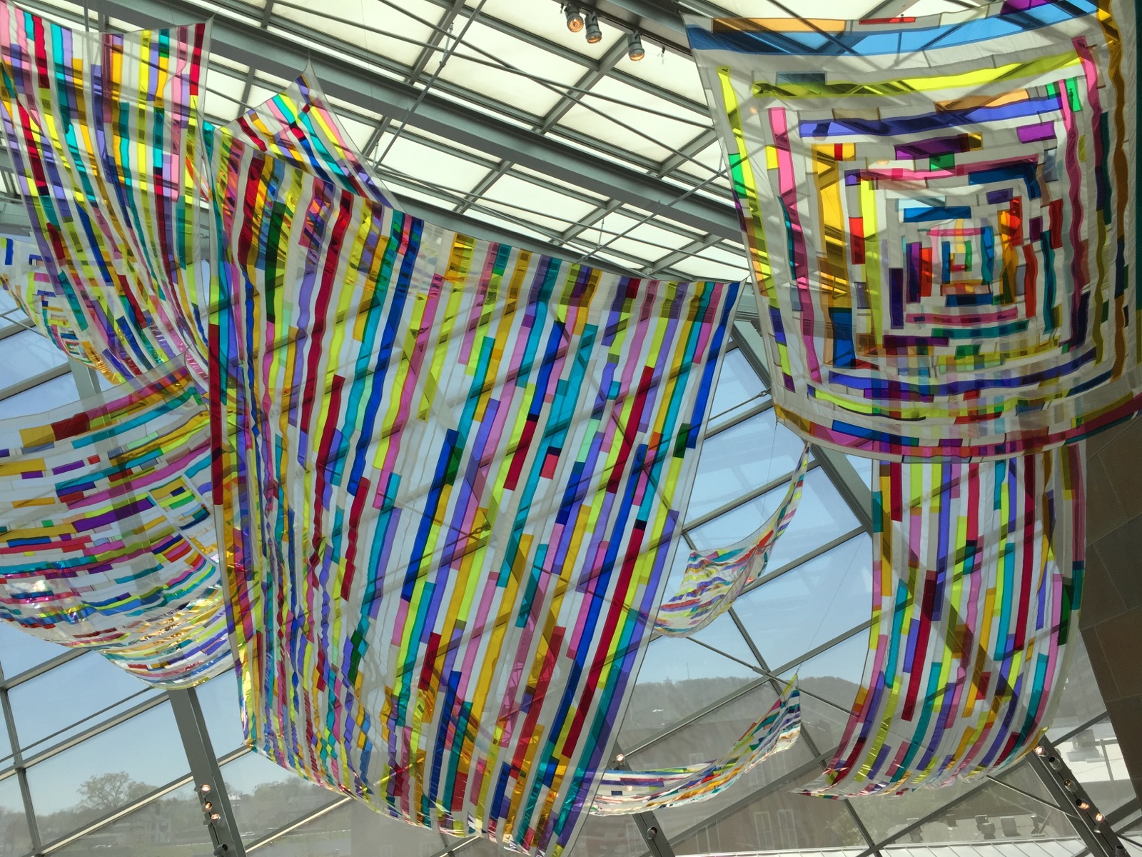 Hanging from ceiling.