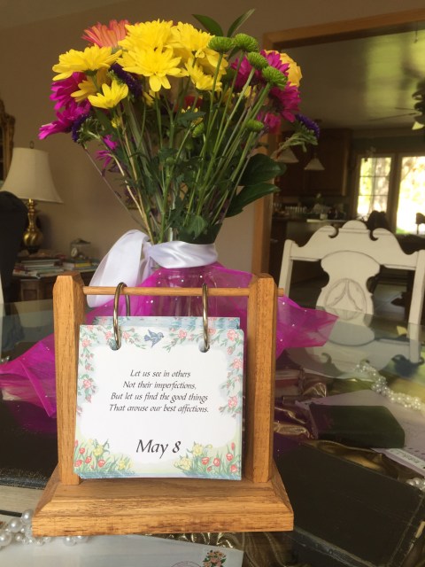 Music swirls around me in harmony. The fragrance is heady with a hint of lilac. The sanctuary is decorated with textures and shapes that are all unique and one of a kind. Fresh greenery and fresh flowers grace the décor in beautifully displayed accents. And I just sit here and marvel at all the splendor that greets me when I walk out my back door. God’s sanctuary. Our backyard. Dave and I are but stewards of this lovely real estate. And I thank God from the depths off my heart, that even while I was a little girl, living in a treeless project in government housing, God was growing all these trees for me. I will never forget that first morning when I awakened after our first night in our new home. When I looked out the window I realized that God had taken care of all that was before me, knowing I would someday be here. Perhaps a selfish thought, but at the time all I had in my heart was amazement and gratitude. And thirty years and hundreds of plants later, we are still here, enjoying the magnificence of our Creator’s artwork. And I am still amazed. And I am still grateful.