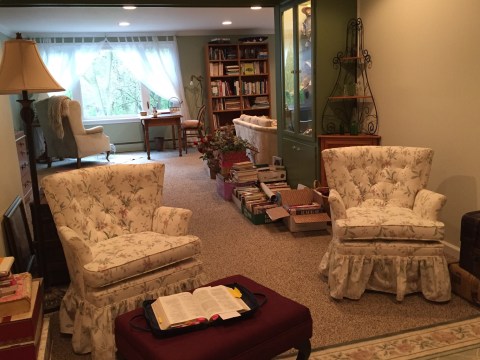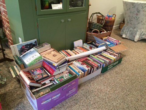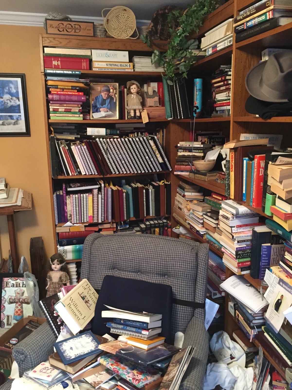 This is what the shelves look like today. I won’t show you the room where the books are stored.